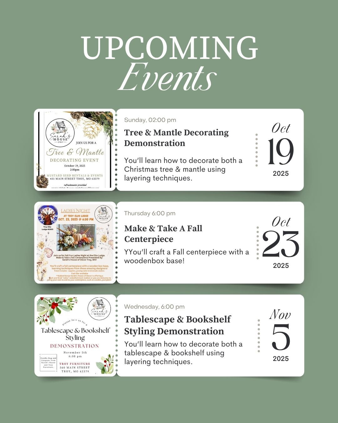 "I can't say enough about the amazing talents of Sarah and Sherri from Sarah's House of Decor. The mantel, buffets and table displays they have done for my home have made it my happy place! Each and every person who visits can't say enough about my new decor and their talents."